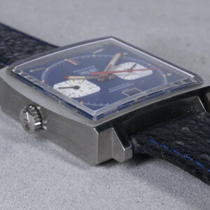 The Monaco was introduced in 1969 and if Heuer was looking to the future with its radically-styled case, history confirms that the company overshot the mark. The Monaco did not sell well, even after Heuer introduced less expensive models in 1972 and 1974, and the model was “closed-out” circa 1975. Indeed, the Autavia and Carrera could be restyled to add some 1970s funk to more traditional models, but the look of the Monaco could not be dialed down to suit more conservative tastes.