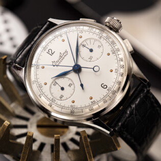 Since IWC’s development of the Calibre 79230 movement, IWC and several other brands offered a variety of cam-based rattrapante chronographs starting at around the $10,000 price point, with pre-owned versions of various models being available in the $5,000 range. The movements don’t have the beauty offered by the pair of column wheels and powerful pincers found in traditional rattrapante chronographs, and the thickness of the IWC movements is a drawback for some collectors, but with the adoption of the Valjoux 7750 to the split-second task, these chronographs have become far more accessible to enthusiasts.