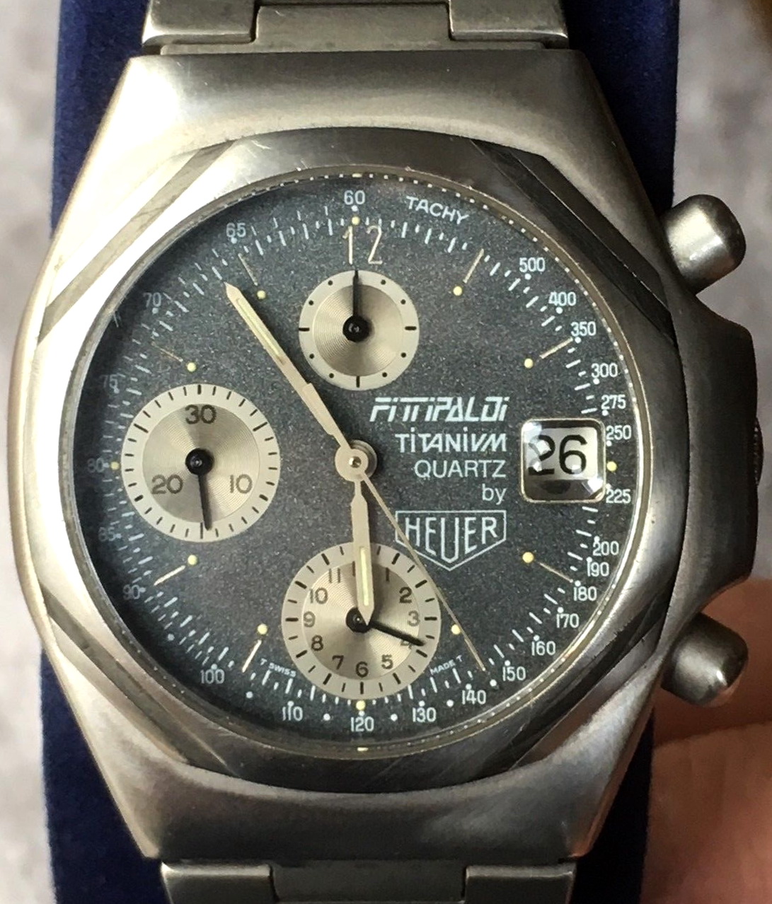 It is unclear why Heuer would have offered a “Fittipaldi” model in 1985. Emerson Fittipaldi was a popular driver both Eurpoe and the Americas, and his move to join the Indy Car circuit on a full-time basis did attract media attention in the United States. Fittipaldi did pursue a wide range of business interests after his retirement from Formula One racing, including Fittipaldi wheels, so perhaps the production of this chronograph was part of an affiliation with TAG Heuer.