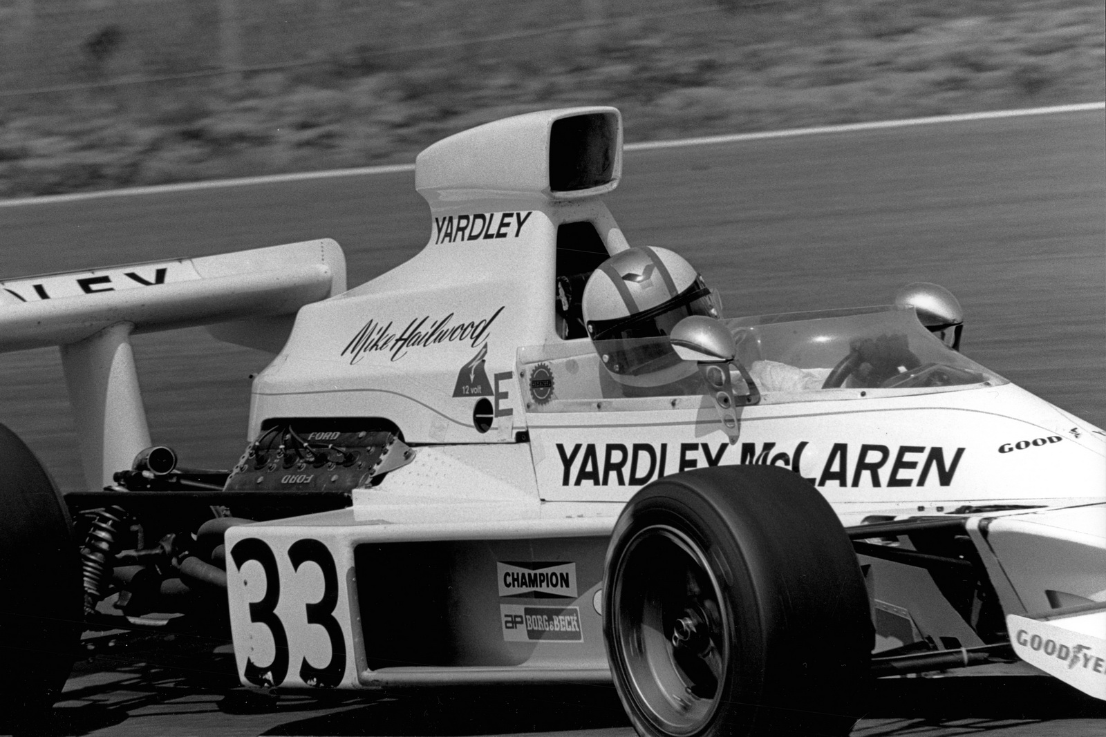 For 1974, Hailwood switched to the Yardley McLaren team, with the McLaren-Form M23. The 1974 season started well for Hailwood, with top 10 finished in seven of the first nine races, including a third place finish in South Africa. In the 11th race of the season, the German Grand Prix, Hailwood was challenging for fourth during the closing stages of the race, but he crashed at “Pflanzgarten”, breaking his right leg. Repairing the leg would require multiple surgeries, forcing the end of Hailwood’s automobile racing career. His 12 points for the season left him tied with Jacky Ickx, for 10th among the drivers.
