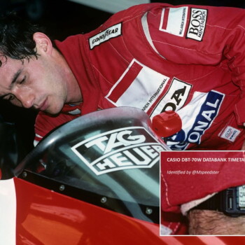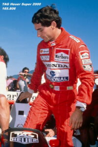 Enter Ayrton Senna in 1988, surely that’s when Senna started wearing TAG Heuer, right? Nope. Like Prost, Senna wore watches of his personal choosing. Neither driver wore a TAG Heuer patch on their racing overalls that year either. The TAG Heuer logo was only on their ‘88 McLaren MP4/4 race cars.