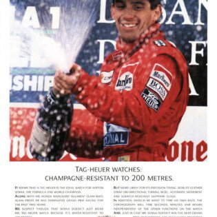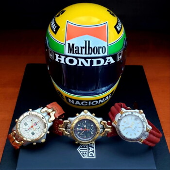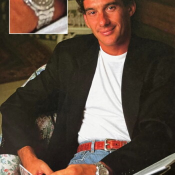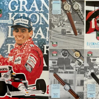 Senna needs no introduction, his name says it all. His heroic drives, character and personal life have been covered elsewhere many times. Here we focus on the watches he wore during his F1 career and what they might have meant to him. Much like his blue Nacional cap, his TAG Heuer watches were an integral part of his persona. Yes, it was a business relationship, but Senna genuinely seemed to enjoy his TAG Heuers, constantly wearing them at almost all times. Not only at the F1 circuits, but everywhere! Whether relaxing at home or at play, like flying his radio-controlled model planes, out on his boat or riding his jetski, his TAG Heuer timepieces rarely left his wrist. He also seemed to take great pleasure in gifting new TAG Heuer watches to friends and family. Senna had an authentic bond with the brand, even helping to design a watch that would carry his name, the “6000 Senna”. This strong connection lives on even today, with TAG Heuer adopting Senna’s famous catch phrase “Designed to Win” as its latest advertising campaign.