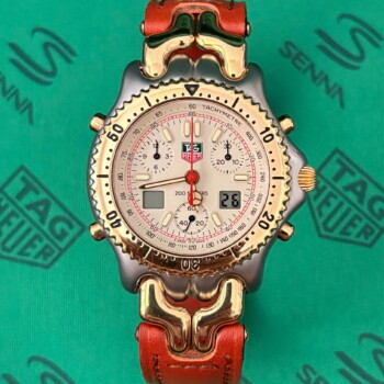 The Formula 1 watch, released in ‘86, was the first new watch to wear the TAG Heuer logo, but its development by Heuer was already underway prior to TAG’s acquisition. TAG Heuer would next introduce the Sports Elegance (S/el) line in 1987, the first fully in-house developed watch since becoming TAG Heuer. The S/el Chronographs were then introduced sometime in ‘89, appearing in the 1990 TAG Heuer catalog. It was the S/el that would become synonymous with Senna. So much so that today TAG Heuer even refers to its unique shaped links as “Senna S links”.