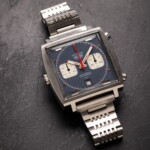 Having put aside the Speedmaster, McQueen focused on the Heuer Monaco that Nunley displayed on the table. With its square case, midnight blue dial and white registers, Heuer had introduced this radically-different style of chronograph one year earlier, as the brand’s very futuristic chronograph for the 1970s. McQueen strapped on the Monaco and said, “Yeah, I want to wear this one.”