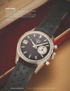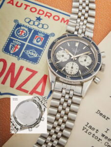 On December 6, 2024, in New York City, Sotheby’s is hosting the “Heuer Champions” auction, comprised of 38 lots of vintage Heuer chronographs, dashboard timers and stopwatches closely associated with racing. In this posting, we will look at 10 of the lots from the 1960s and 70s that enjoy particularly interesting racing pedigrees.
