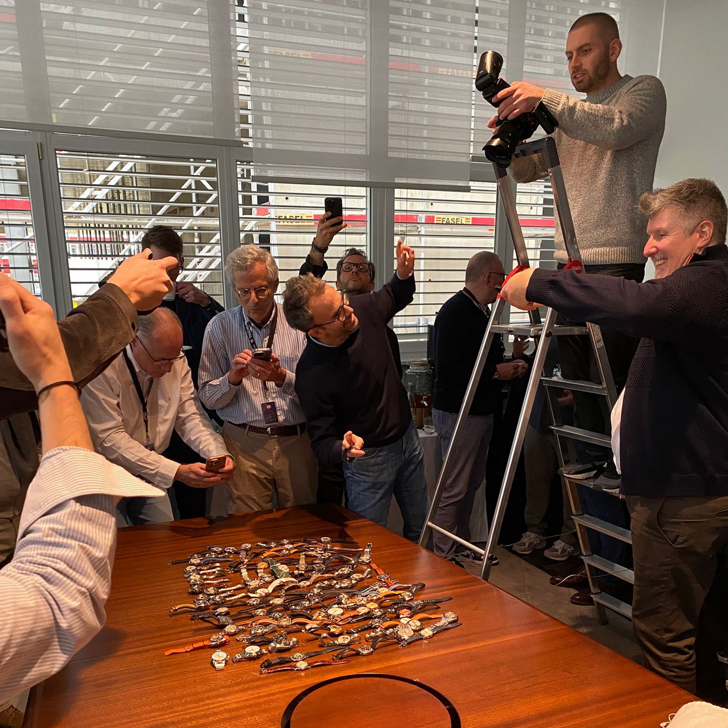 During a break between sessions, the approximately 30 collectors attending the Summit decided that it would be fun to put their watches on a table, allowing photographers to capture the legendary “table shot”. There was no planning for this table shot; our hosts hadn’t made any suggestions about which watches the participants should bring to the Summit; in fact, we were advised to be cautious regarding bringing watches into and out of Switzerland.