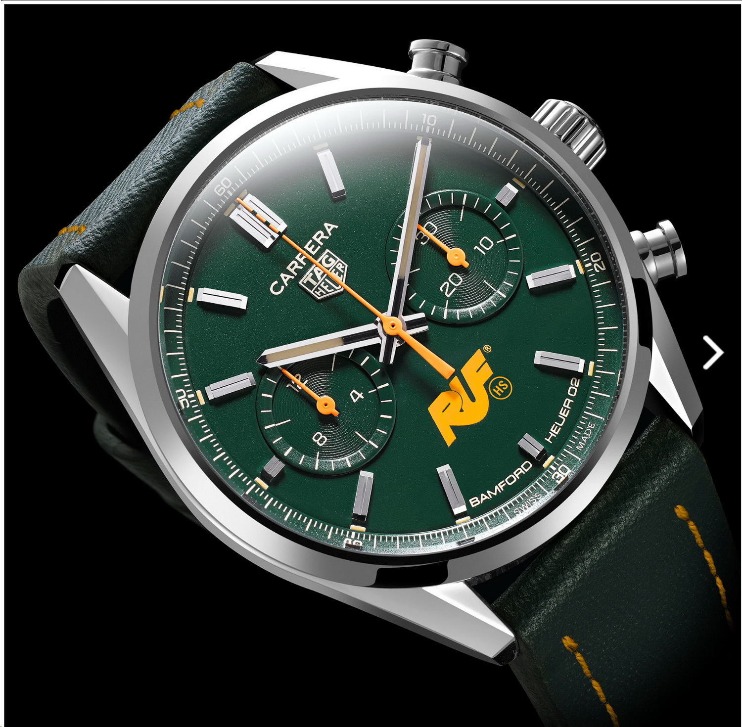 47. TAG Heuer Carrera RUF x Bamford x Highsnobiety Limited Edition (2022) – Using the 42 millimeter Carrera chronograph, this Limited Edition of 100 watches (reference WHF2471) was the natural collaboration between a producer of high-performance Porsches, a global fashion and lifestyle media company, and Bamford Watch Department.