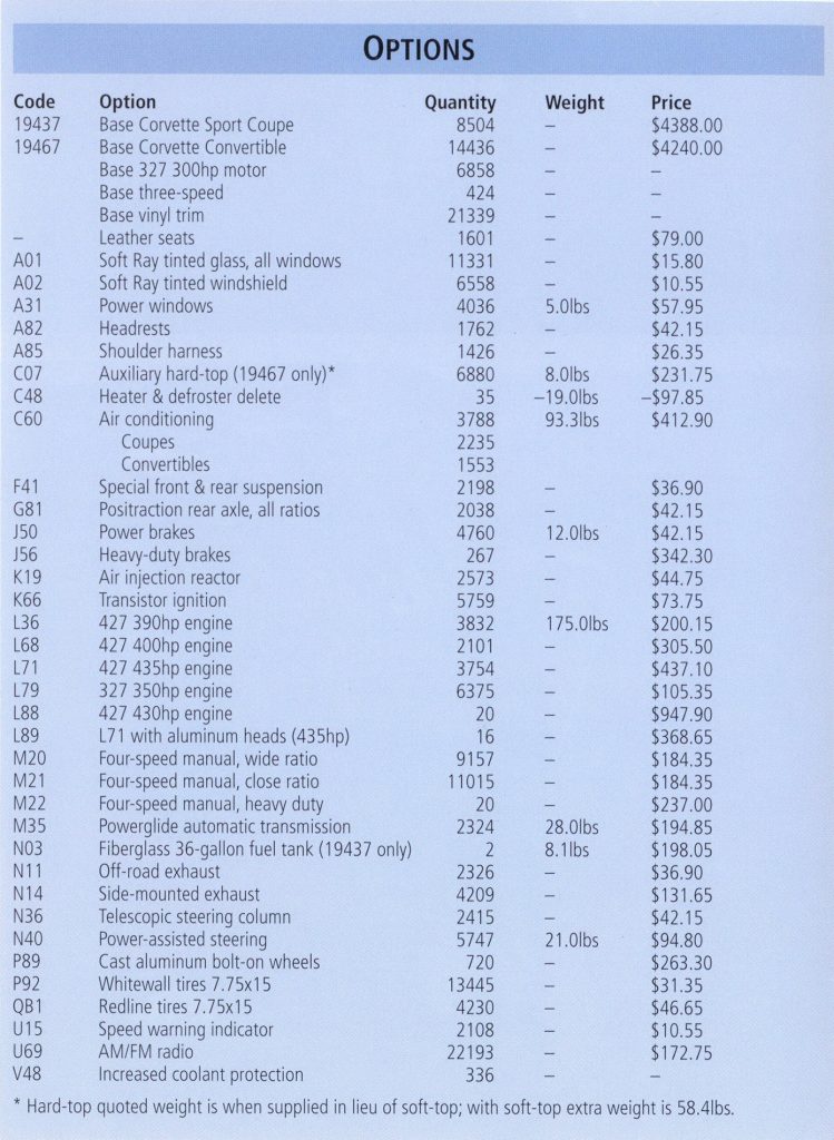 A final deterrent was the fuel requirement, with Chevrolet indicating that the L-88 engine, with its 12.5 to 1 compression ratio required fuel with at least 103 octane, hardly the stuff of the neighborhood gas station.