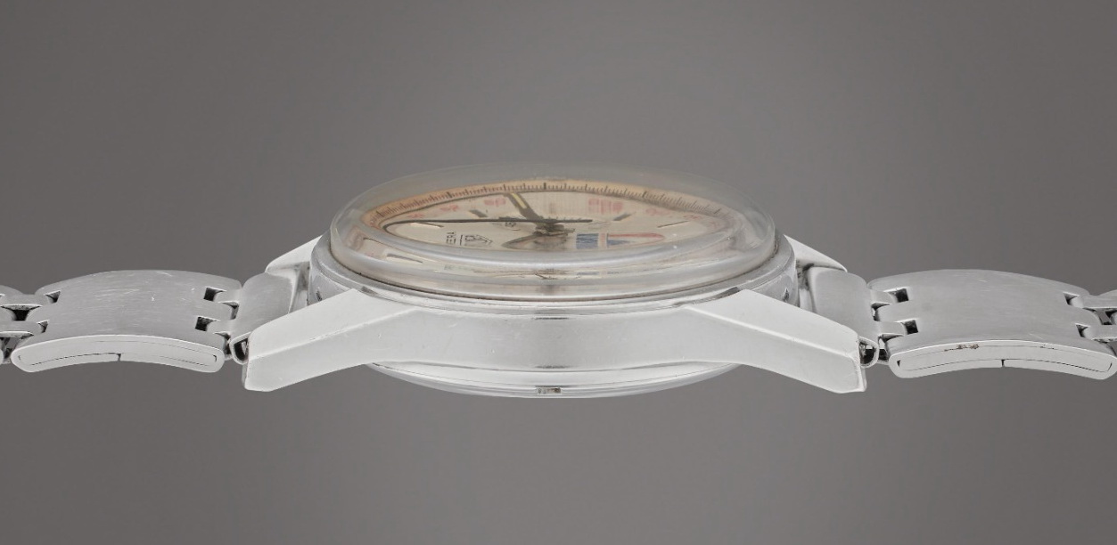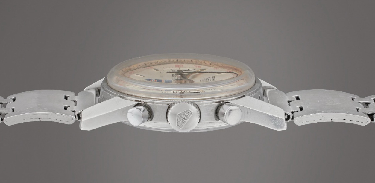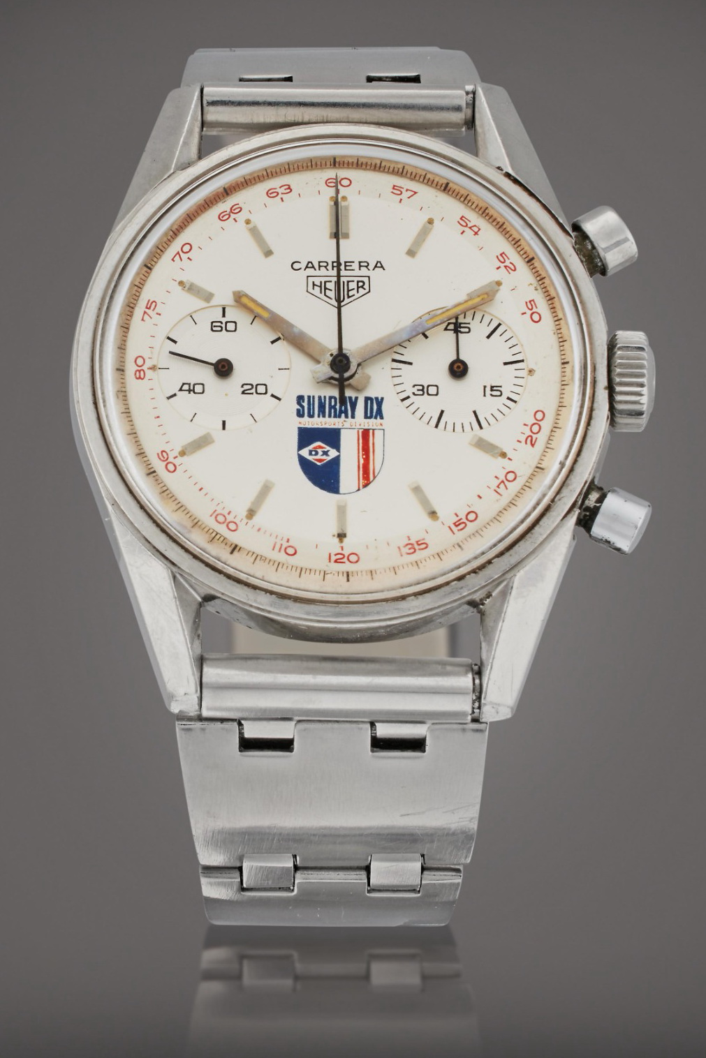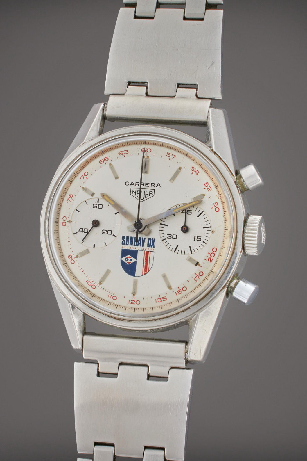 The Carrera being sold by Sotheby’s as Lot 90 in its Fine Watches Auction has the serial number 72620, which suggests that the watch was produced circa 1967. Gary believes that the Sunray DX racing team ordered 12 of these watches and gave them to members and friends of the team.