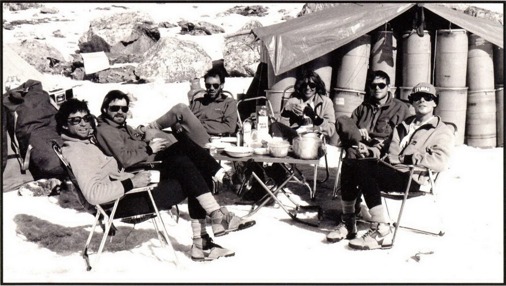 The photos from the 1988 expedition were taken by Mimi’s teammates, including Stephen Venables (on Instagram, here). The team leader of the expedition was Robert Mads Anderson (on Instagram, here).